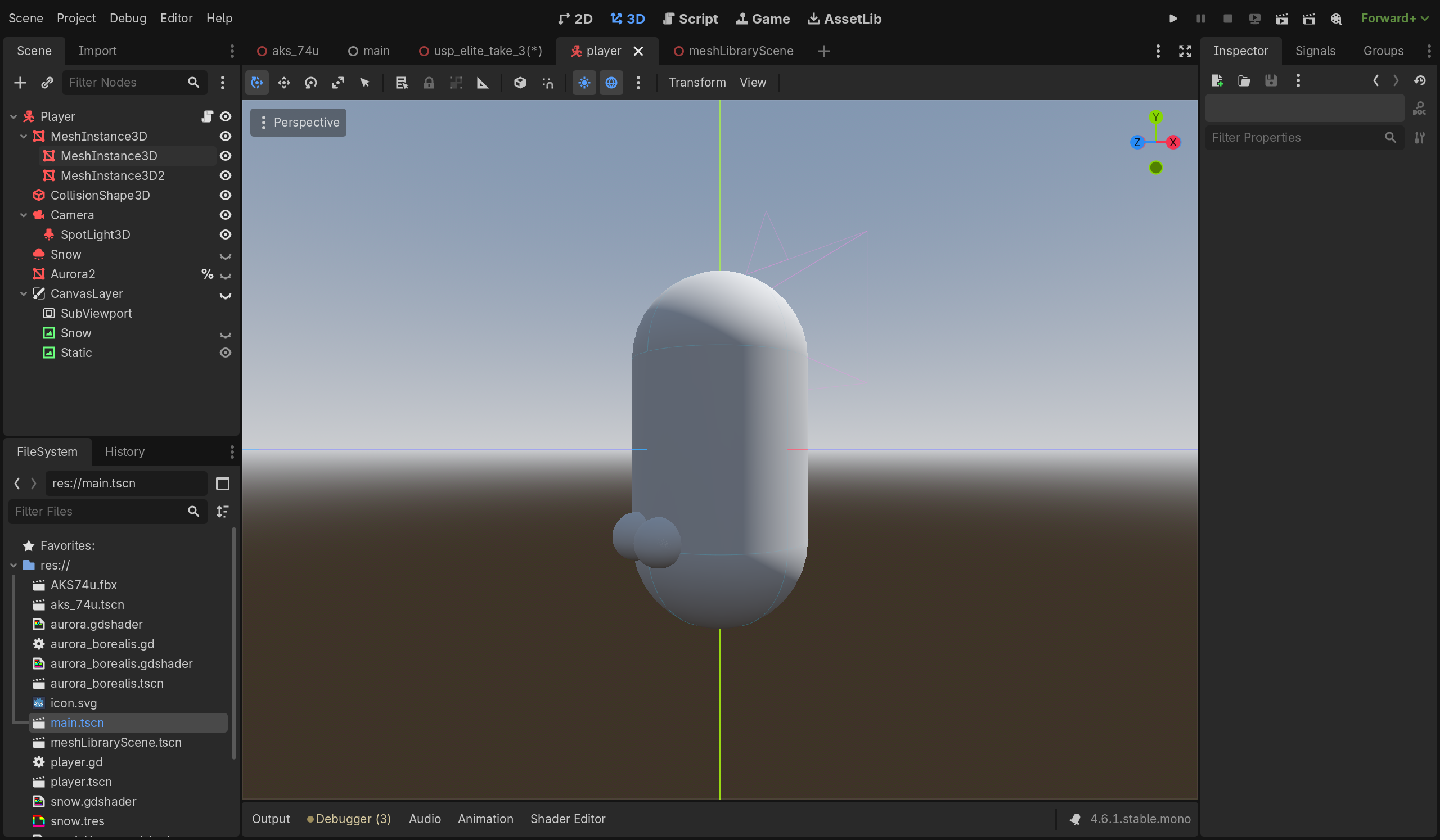 So, I made it a bit smaller in filesize at the cost of quality. The resulting mesh was now only 500MB, and Godot was slightly happier about loading it.