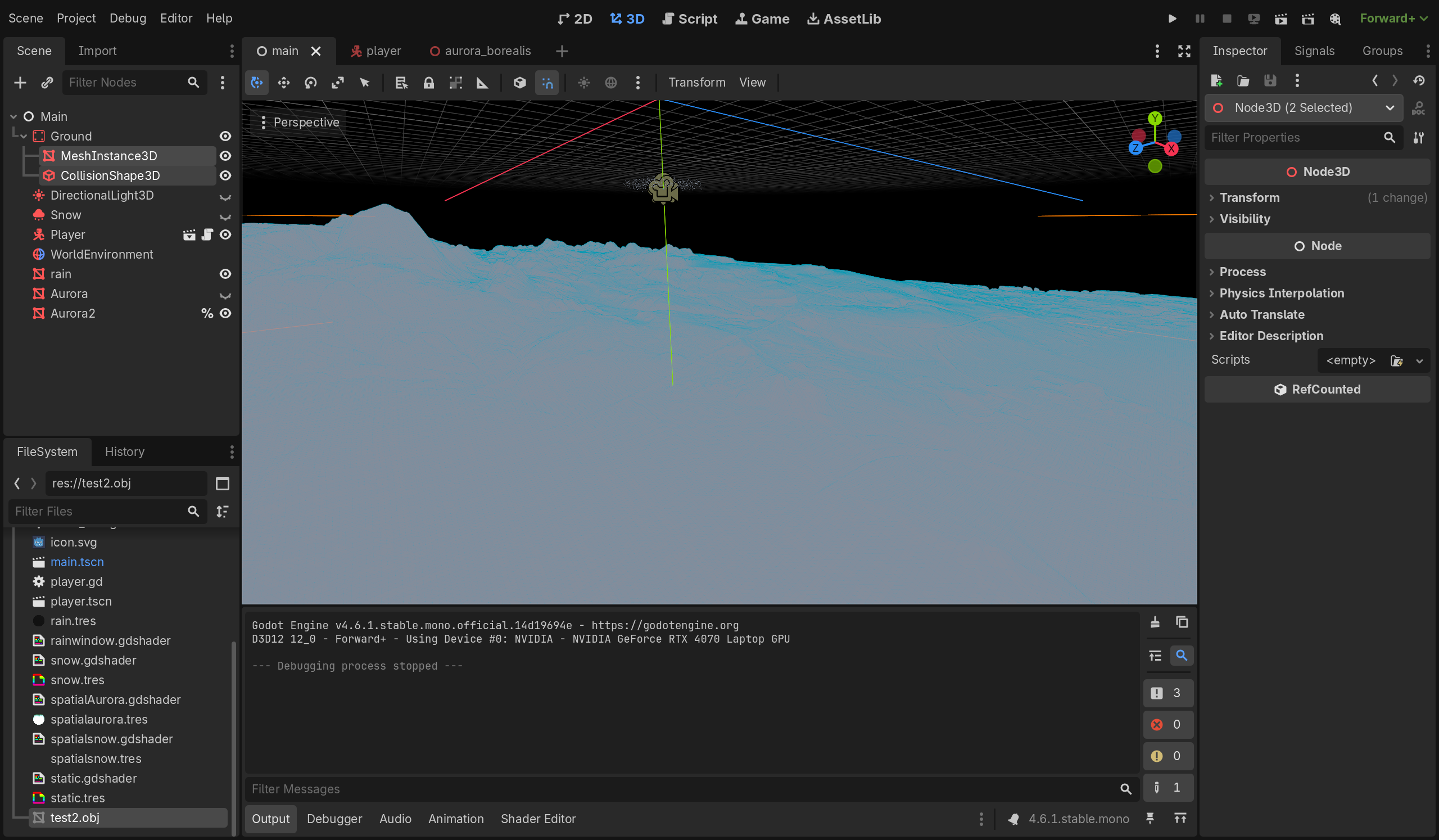 Then I stole an aurora shader (a few of them, really) and shoved it above the mesh.